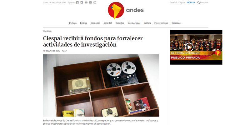 Síntesis: Publicación sobre el convenio firmado entre Senescyt y CIESPAL el 13 de junio de 2018.