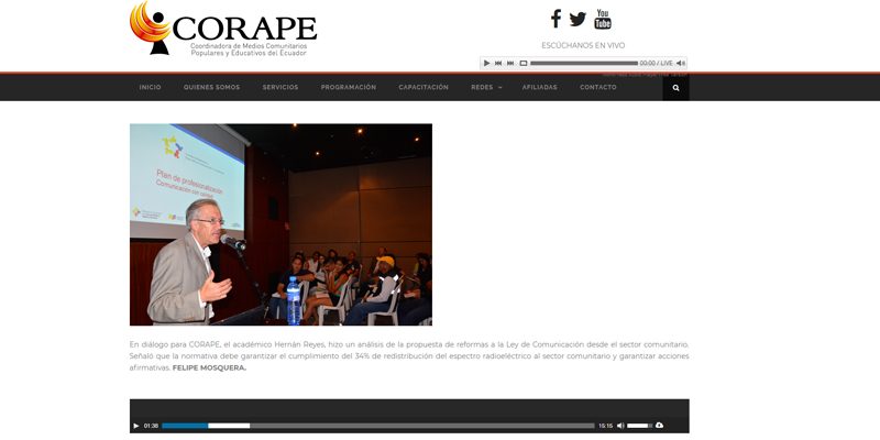 Síntesis: Entrevista al catedrático Hernán Reyes, secretario general de CIESPAL, sobre la propuesta de reforma a la Ley de Comunicación desde el sector comunitario.
