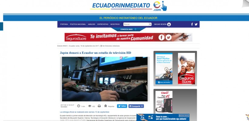 Síntesis: Nota sobre la ceremonia de inauguración de los equipos donados por el gobierno del Japón al CIESPAL para la capacitación en televisión digital.