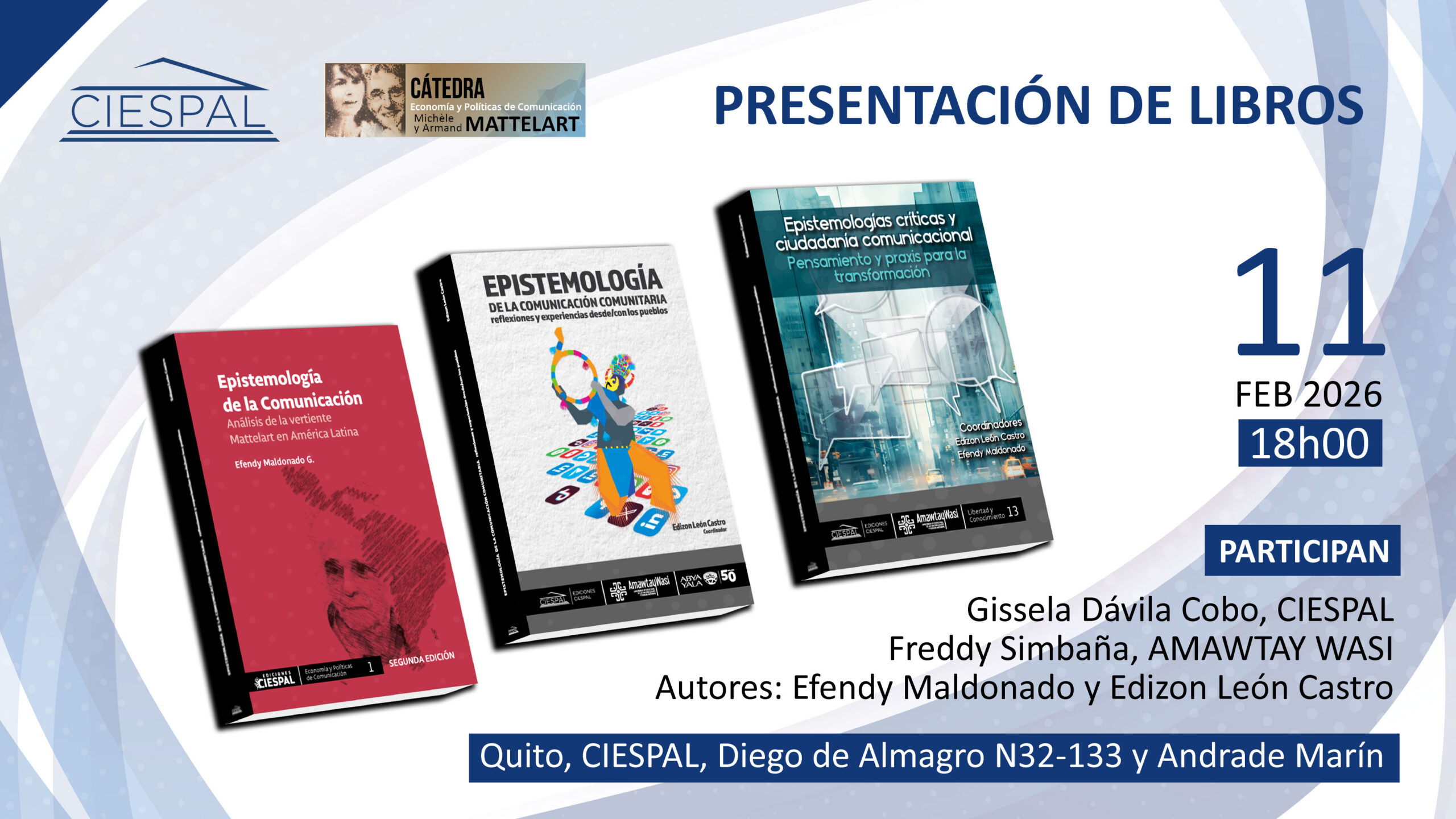 El Centro Internacional de Estudios Superiores de Comunicación para América Latina (CIESPAL) a través de su sello editorial, en el marco de la Cátedra Michѐle y Armand Mattelart tiene el agrado de invitar, el próximo miércoles, 11 de febrero de…
