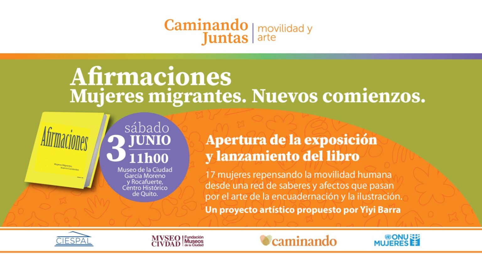 En el marco del proyecto Caminando Juntas, ONU Mujeres, CIESPAL y el Museo de la Ciudad invitan a la inauguración de “Afirmaciones: mujeres migrantes, nuevos comienzos”, exposición fotográfica y presentación de pequeño libro impreso, acompañadas de diarios elaborados y encuadernados artesanalmente por las mujeres participantes, todos son resultados del trabajo desarrollado por un grupo de mujeres en condición de movilidad humana junto a la artista e ilustradora Yiyi Barra en la ciudad de Quito.