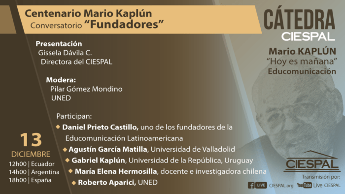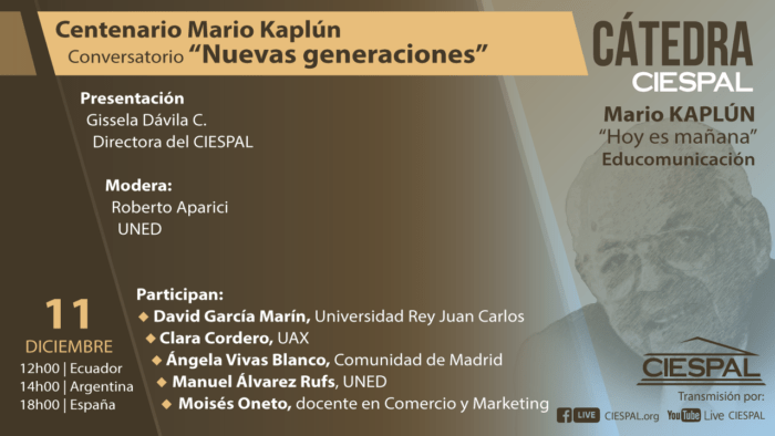 En el marco de la Cátedra CIESPAL de Educomunicación Mario Kaplún «Hoy es mañana» y en el marco del Centerio de Mario Kaplún, hemos organizado…