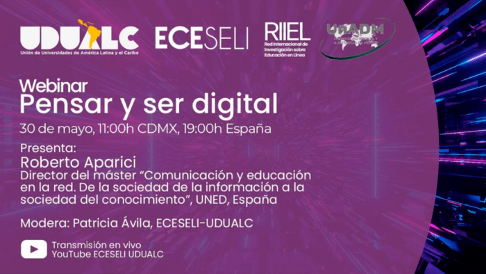 En el marco de la Cátedra Kaplún de Educomunicación «Hoy es mañana» compartimos el Webinar Pensar y ser digital, organizado por UDUALC, ECESELI, RIIEL y…