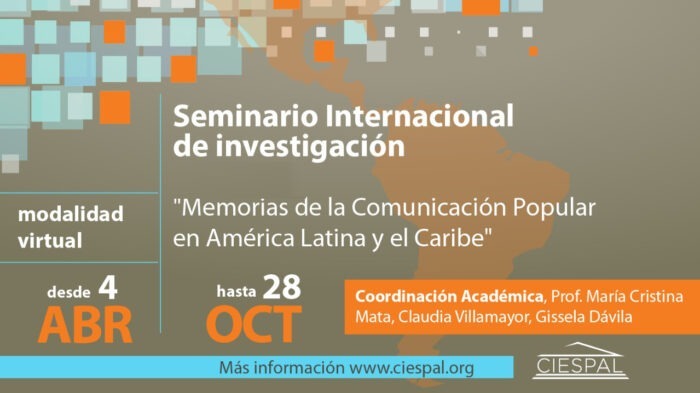 INSCRIPCIONES El Seminario Internacional de investigación “Memorias de la Comunicación Popular en América Latina y el Caribe” es el eje vertebrador de un Programa de trabajo…