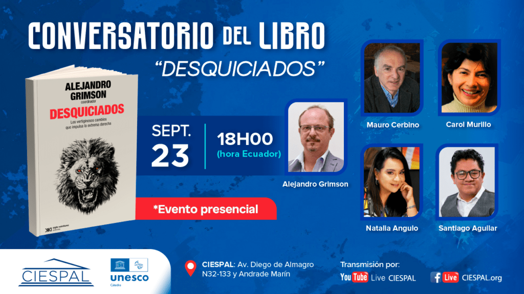El Centro Internacional de Estudios Superiores de Comunicación para América Latina (CIESPAL) invita al Conversatorio del Libro “Desquiciados”, Los vertiginosos cambios que impulsa la extrema…