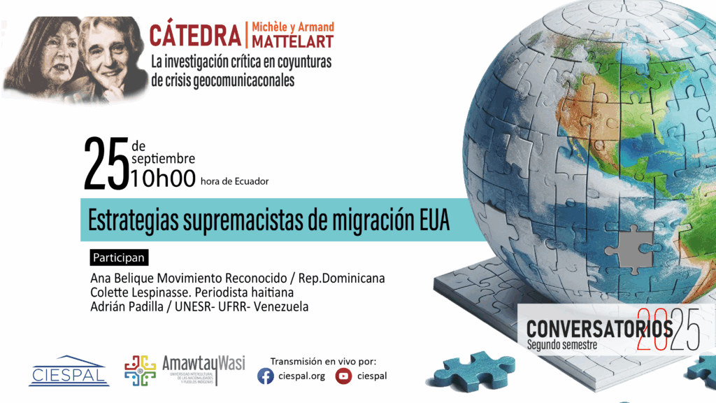 El 25 de septiembre de 2025, la Cátedra Michèle y Armand Mattelart de CIESPAL organizó el conversatorio “Estrategias supremacistas de migración EUA”, con la participación…