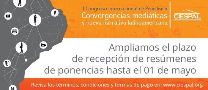 El Centro Internacional de Estudios Superiores de Comunicación para América Latina (CIESPAL) extiende al 01 de mayo el plazo de presentación de resúmenes para el…