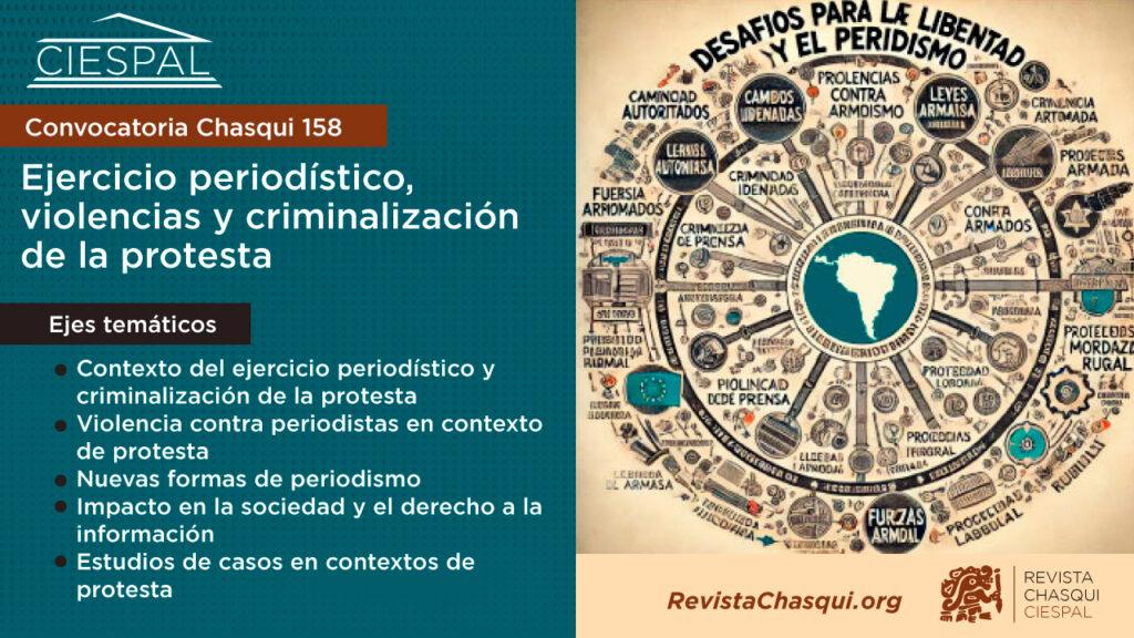 Convocatoria abierta Revista Chasqui 158Ejercicio periodístico, violencias y criminalización de la protesta El Centro Internacional de Estudios Superiores de Comunicación para América Latina, CIESPAL, desde…