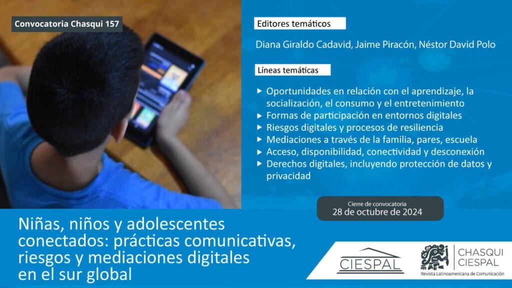 La Revista Latinoamericana de Comunicación Chasqui del Centro Internacional de Estudios Superiores de Comunicación para América Latina (CIESPAL) abre la convocatoria de su edición número…