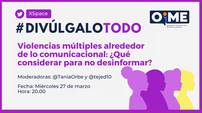 El próximo miércoles, 27 de marzo de 2024, a las 20h00, el Observatorio Universitario de Medios Ecuatorianos (OIME), con el respaldo del Centro Internacional de…
