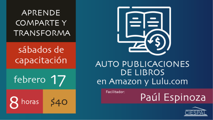 SÁBADO: 17 de febrero de 2024HORARIO: 09h00 – 17h00 VALOR: USD. $ 40,oo INSCRÍBETE Publicaciones editoriales, publicidad digital y docencia.Perfil de los participantes: Escritores independiente y…