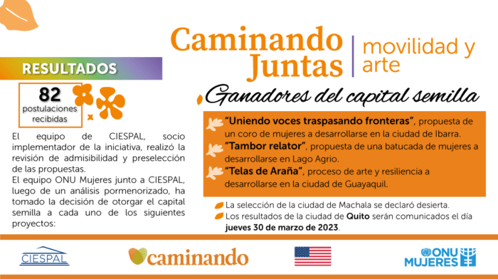 Quito DM, 28 de marzo de 2023ACTA DE SELECCIÓNLa convocatoria “CAMINANDO JUNTAS. MOVILIDAD Y ARTE” estuvo abierta entre el 22 de febrero y el 19…