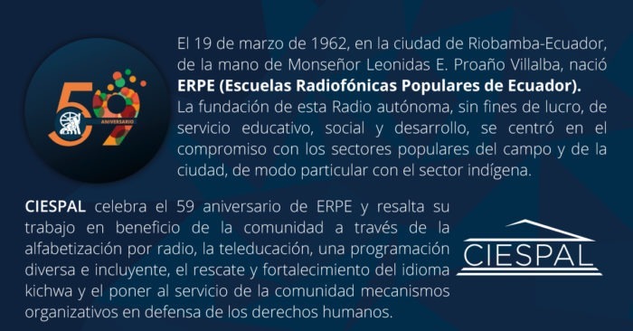 El 19 de marzo de 1962, en la ciudad de Riobamba-Ecuador, de la mano de Monseñor Leonidas E. Proaño Villalba, nació ERPE (Escuelas Radiofónicas Populares…