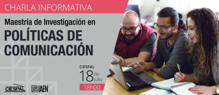 El Instituto de Altos Estudios Nacionales (IAEN) y CIESPAL invitan a la Charla Informativa de la tercera edición de la Maestría de Investigación en Políticas…