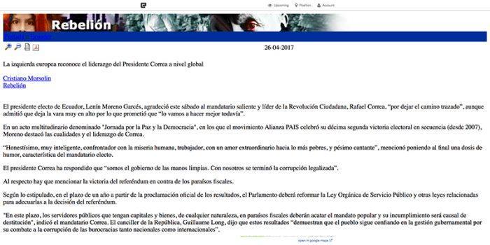 Síntesis: En un acto multitudinario denominado «Jornada por la Paz y la Democracia», en los que el movimiento Alianza PAIS celebró su décima segunda victoria electoral…