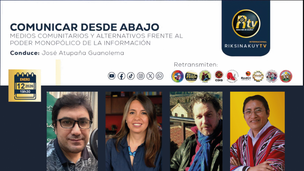 La nota ha sido publicada en:Medio/ Red Social:RiksinakuyTV InternacionalFecha: 2026-01-12Links: https://www.youtube.com/live/LkDLnrxqCvE