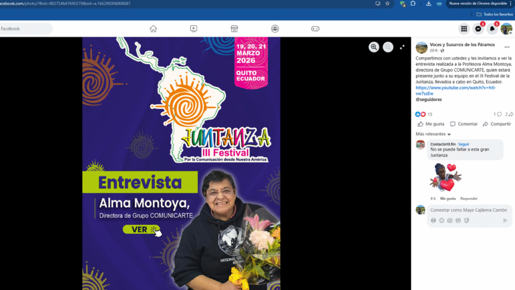 La nota ha sido publicada en:Medio/ Red Social: Facebook- Voces y Susurros de los PáramosFecha: 2026-01-20Link: https://www.facebook.com/share/p/17ur4mg5qm/