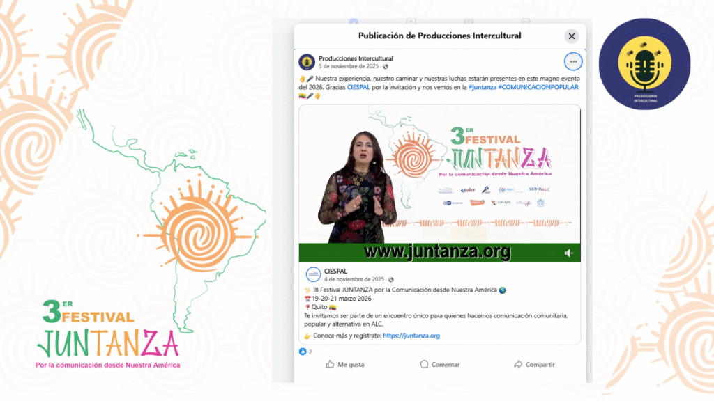 La nota ha sido publicada en:Medio/Redes Sociales: Facebook – Producciones InterculturalFecha: 2025-11-05Link: https://www.facebook.com/share/p/12L6eyBCRqu/