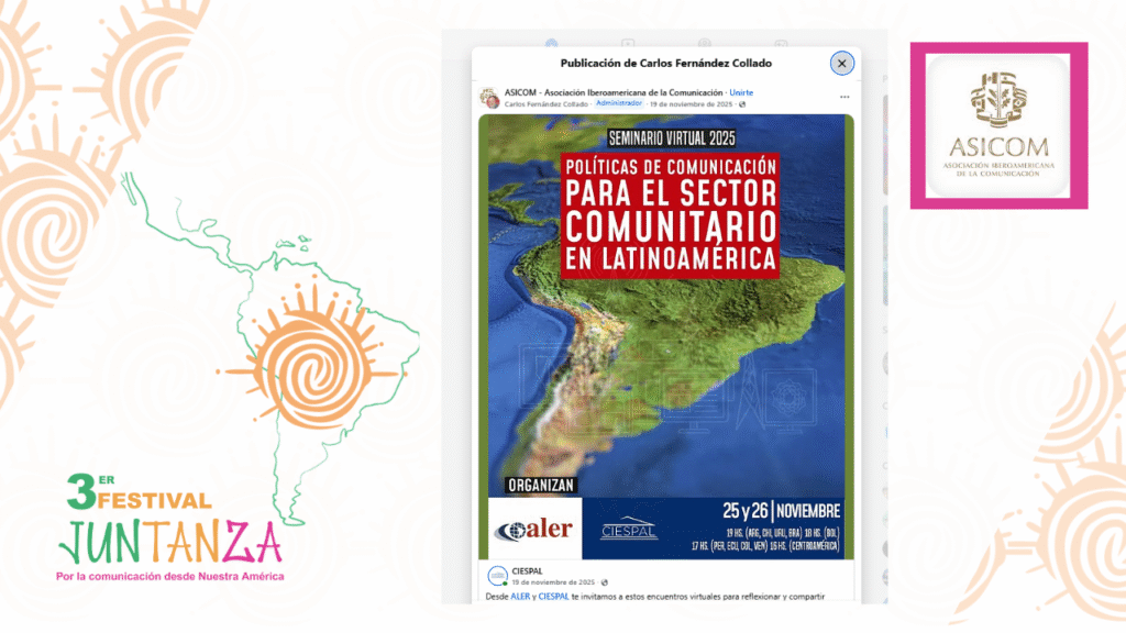 La nota ha sido publicada en:Medio/ Red social: Facebook – Asociación Iberoamericana de ComunicaciónFecha: 2025-11-19Link: https://www.facebook.com/share/p/18BEePsNBT/