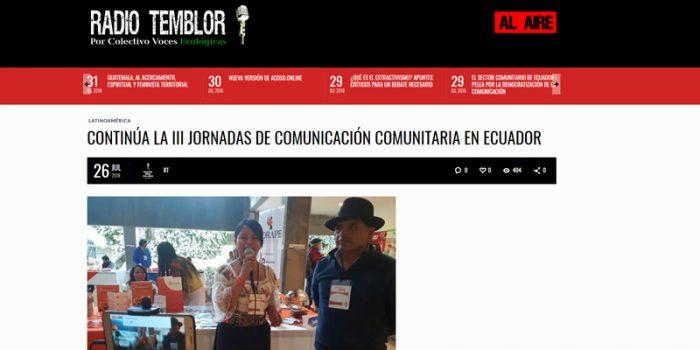 Síntesis: Cobertura durante las III Jornadas de Comunicación Comunitaria en Ecuador e invitación al foro que se realizó el día viernes 27 de julio. Radio Temblor…