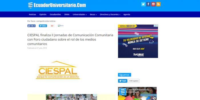 Síntesis: Invitación al foro ciudadano sobre el rol de los medios comunitarios en el marco de las III Jornadas de Comunicación Comunitaria en Ecuador. Ecuador Universitario…