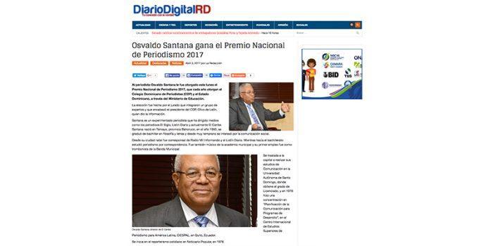 Síntesis: Al periodista Osvaldo Santana le fue otorgado este lunes el Premio Nacional de Periodismo 2017, que cada año otorgan el Colegio Dominicano de Periodistas (CDP)…