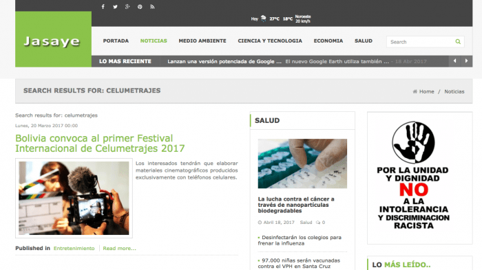 Síntesis: Convocatoria al primer Festival Internacional de Celumetrajes 2017, evento que se llevará a cabo desde el 9 al 14 de junio en Bolivia. JASAYE…