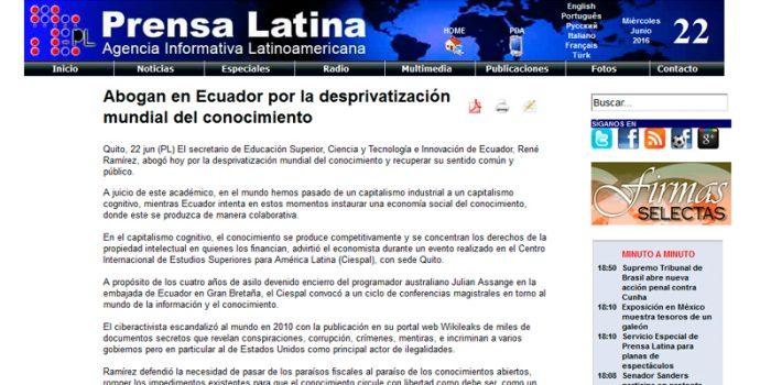 Síntesis: El secretario de Educación Superior, Ciencia y Tecnología e Innovación de Ecuador, René Ramírez, abogó hoy por la desprivatización mundial del conocimiento y recuperar su…