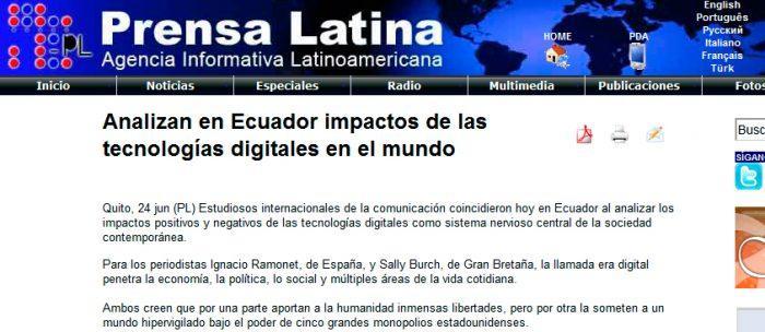 Síntesis: Estudiosos internacionales de la comunicación coincidieron hoy en Ecuador al analizar los impactos positivos y negativos de las tecnologías digitales como sistema nervioso central…