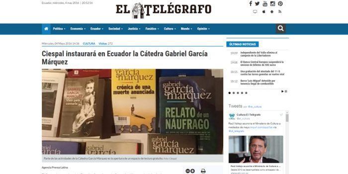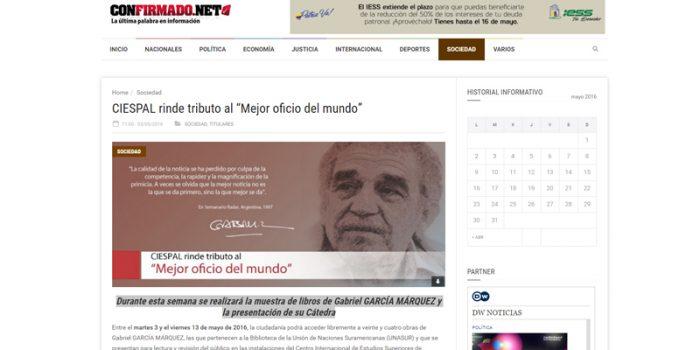 Síntesis: Durante esta semana se realizará la muestra de libros de Gabriel GARCÍA MÁRQUEZ y la presentación de su Cátedra. Confirmado.net Fecha: Martes 03 de mayo…