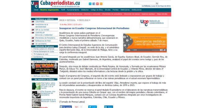 Síntesis: Primer Congreso Internacional de Periodismo Convergencias mediáticas y nueva narrativa latinoamericana, que sesionará en Quito, Ecuador, hasta el próximo sábado 7 de mayo. Razón…