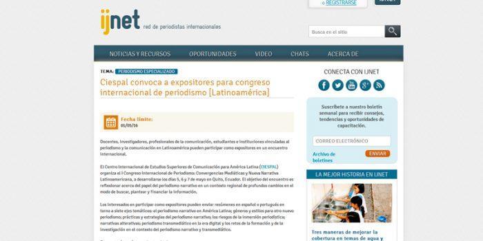 Síntesis: El Centro Internacional de Estudios Superiores de Comunicación para América Latina (CIESPAL) invita a participar en el I Congreso Internacional de Periodismo: Convergencias Mediáticas…
