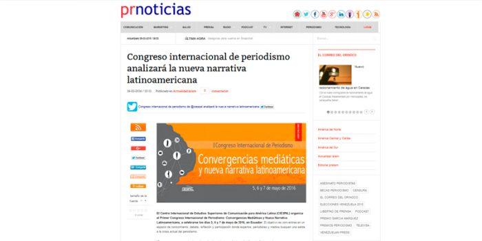 Síntesis: El Centro Internacional de Estudios Superiores de Comunicación para América Latina (CIESPAL) organiza el Primer Congreso Internacional de Periodismo: Convergencias Mediáticas y Nueva Narrativa…