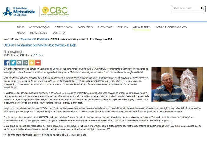 Síntesis: La nota aborda el homenaje que rinde el Centro Internacional de Estudios Superiores de Comunicación para América Latina (CIESPAL) al Profesor José Masques de Melo…