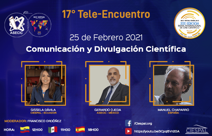 El Centro Internacional de Estudios Superiores de Comunicación para América Latina (CIESPAL) y la Asociación Española de Cine e Imagen Científicos (ASECIC) organizan el 17° Tele-Encuentro Interactivo de…