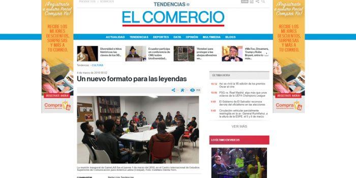 Síntesis: Publicación sobre el GameLab organizado por Medialab UIO . El Comercio Fecha: 04 de marzo de 2018 Link: http://bit.ly/2I5hgzh