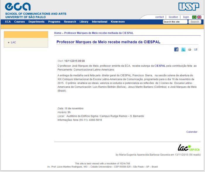 Síntesis: El profesor José Marques de Melo, ACE profesor emérito recibe condecoración por CIESPAL por su contribución al Pensamiento Comunicacional Latinoamericano. La medalla será entregada por el Director…