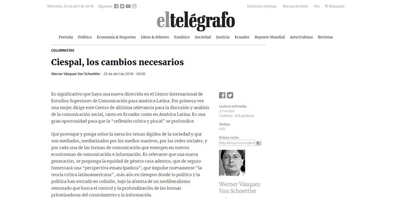 Síntesis: Publicación sobre los cambios en CIESPAL y la nueva Dirección General.
