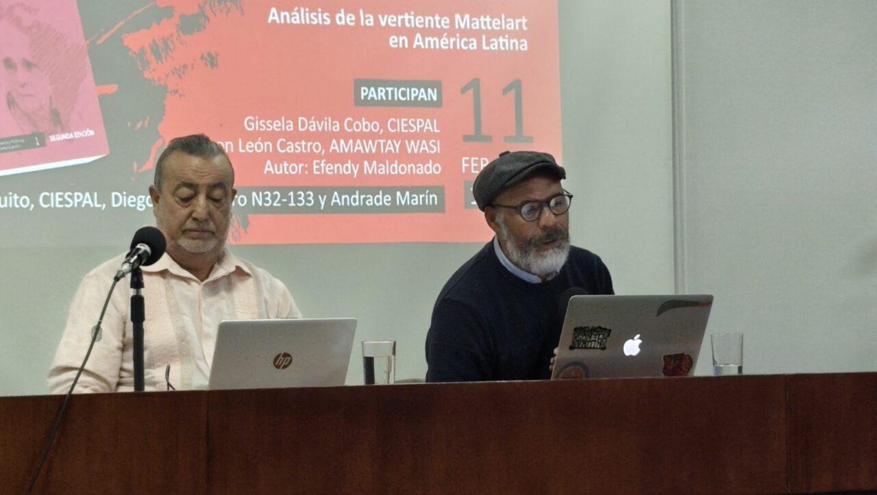 Por su parte, Efendy Maldonado, autor de la obra y Coordinador General de la Cátedra Michèle y Armand Mattelart de CIESPAL, presentó la segunda edición del libro y destacó la importancia de la obra teórica y metodológica del maestro Armand Mattelart quien falleció a finales del 2025. Efendy Maldonado respecto a su obra enfatizó en la necesidad de construir una epistemología viva, vinculada a la praxis social y a las luchas de los pueblos. Alertó sobre los desafíos de la vigilancia digital, la dependencia tecnológica y la pérdida de soberanía de datos en América Latina, invitando a asumir la obra como una herramienta crítica para enfrentar los retos contemporáneos y fortalecer la democratización de la comunicación.