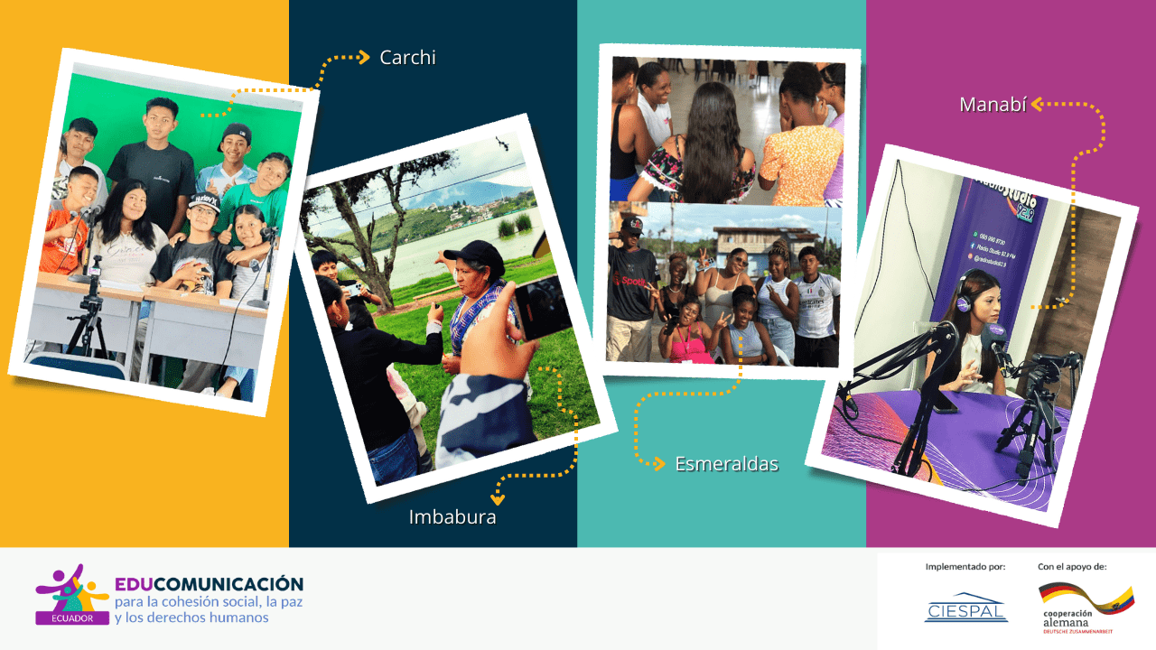 Conoce más del proyecto “Educomunicadores para la cohesión social, la paz y los derechos humanos” que implementa CIESPAL y es financiado por el Ministerio Federal de Cooperación Económica y Desarrollo (BMZ) de Alemania y apoyado por la Deutsche Gesellschaft für Internationale Zusammenarbeit (GIZ) GmbH.