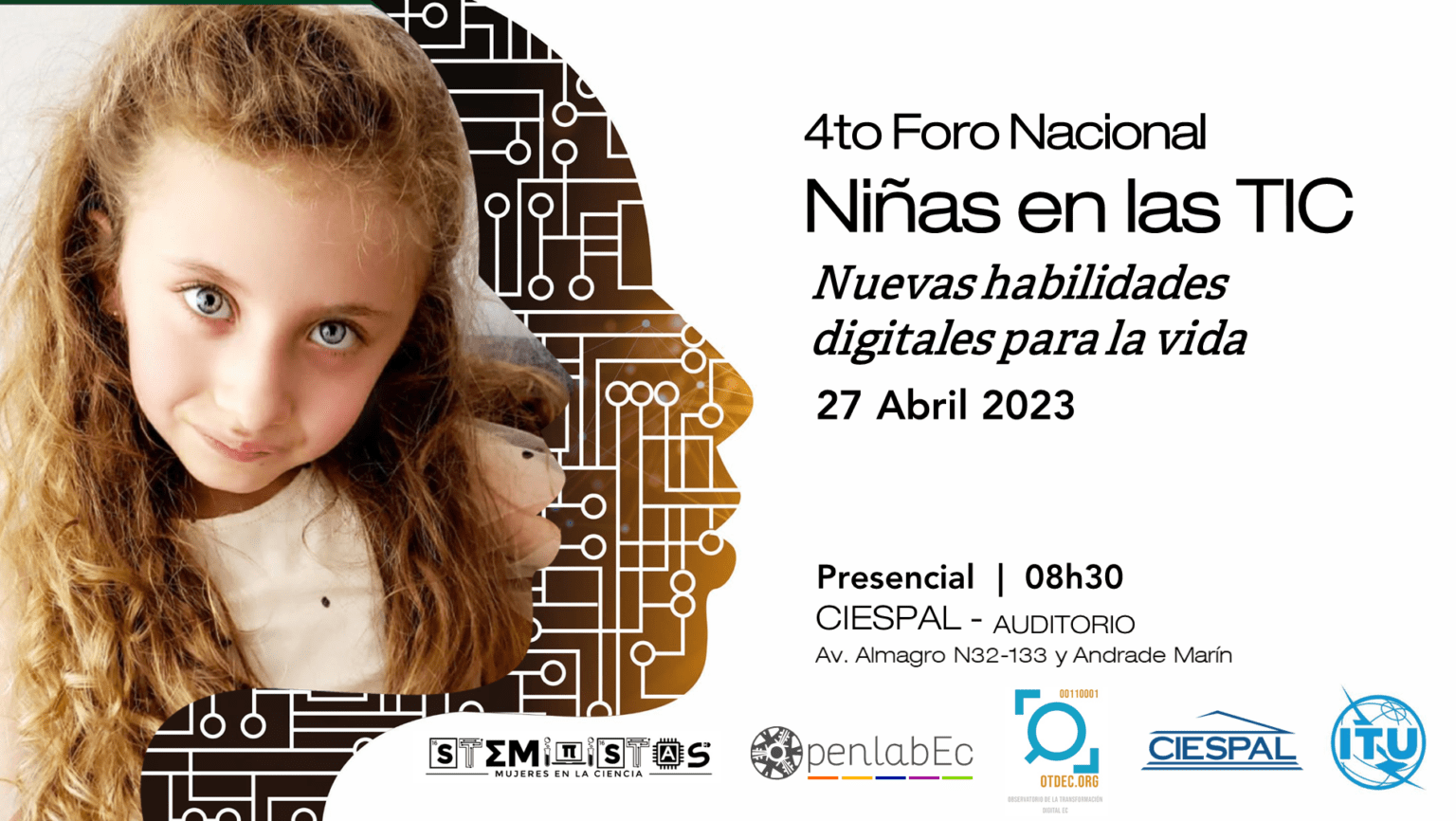 Juntamos esfuerzos desde CIESPAL, desde el Observatorio de la Transformación Digital de Ecuador con su programa STEMINISTAS y desde OpenLabEC para conmemrorar este dia pues, estamos totalmente convencidos que con más apoyo a la educación y formación de habilidades, con más divulgación científica y con más espacios que permitan la participación de mujeres, inspiraremos a más niñas y mujeres jóvenes a seguir activamente carreras STEM para cerrar la brecha digital de género. Es por ello que, con el aval de la Unión Internacional de las Telecomunicaciones (UIT), nos sumamos a la conmemoración mundial de este importante dia y como lo hemos hecho año tras año, organizamos el IV Foro presencial de niñas y mujeres denominado “Nuevas Habilidades Digitales para la vida”, el cual se llevará a cabo en la ciudad de Quito, el jueves 27 de abril de 2023 desde las 8:30 am en el auditorio de CIESPAL. Como panelistas, ponentes y entrevistadoras tendremos a niñas y jóvenes que se han involucrado en las STEM desde edades tempranas y a mujeres del sector de las TIC con una trayectoria amplia que con sus testimonios e historias inspiraraán a las generaciones futuras. La participación en el Girls in ICT Day puede ser una forma emocionante para que las niñas y mujeres jóvenes se conecten con otras personas interesadas en la tecnología y obtengan una visión más amplia de las oportunidades de carrera en este campo.