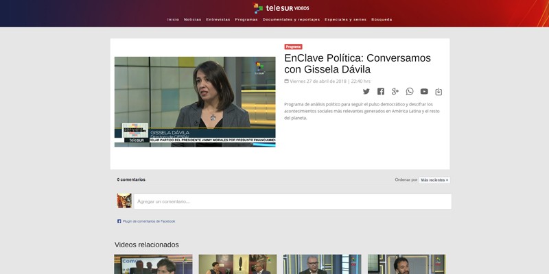 Síntesis: Entrevista a Gissela Dávila, Directora General de CIESPAL sobre el Rol de los medios de comunicación en situación de riesgo, el programa EnClave Política de Telesur.