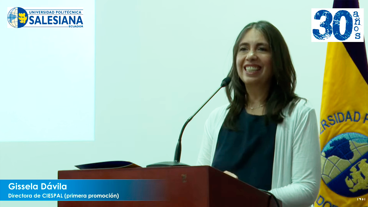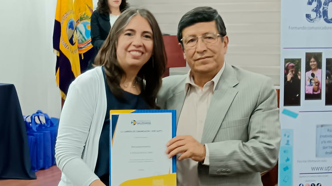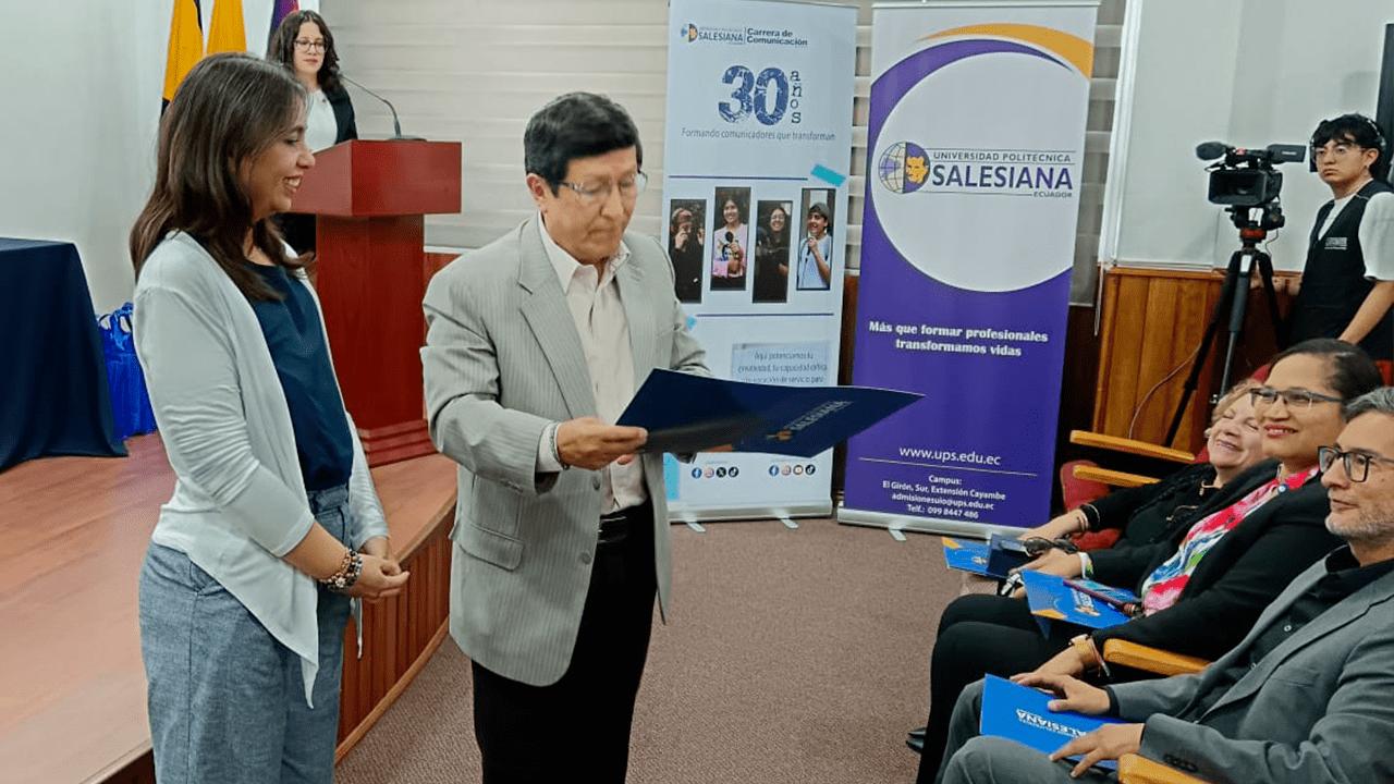 La Carrera de Comunicación sede Quito de la Universidad Politécnica Salesiana cumplió 30 años de vida institucional, y en el marco de la celebración confirieron un reconocimiento a Gisela Dávila Cobo, directora general del Centro Internacional de Estudios Superiores de Comunicación para América Latina (CIESPAL), por su destacada labor a favor de la comunicación comunitaria y popular. El reconocimiento fue suscrito por el director de la carrera de Comunicación y entregado el 17 de diciembre de 2025.