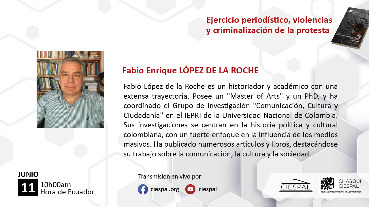 La transmisión será en vivo a través de las redes sociales Youtube y Facebook de CIESPAL.