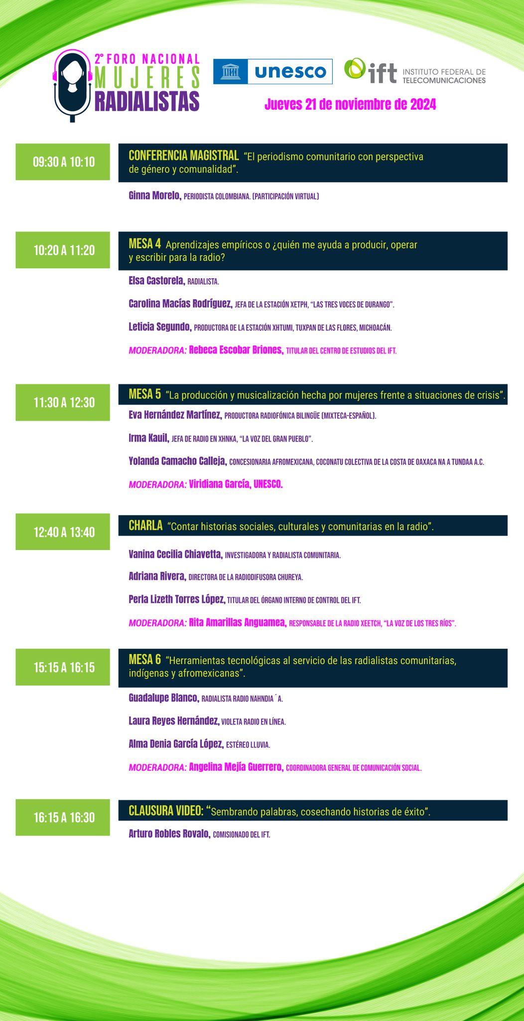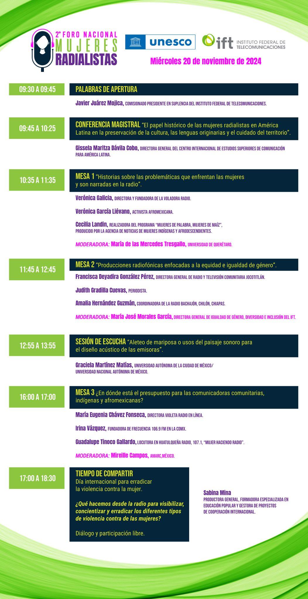 El Instituto Federal de Telecomunicaciones y UNESCO han programado una agenda en la que, además, se abordará historias sobre las problemáticas que enfrentan las mujeres y son narradas en la radio, así como producciones radiofónicas enfocadas a la equidad e igualdad de género.