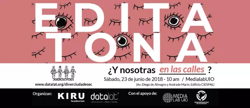 Esta actividad ha sido organizada en el marco de la de la campaña ¿Y Nosotras? que busca disminuir las brechas de género en diversas instancias de nuestra sociedad. Esta vez la Editatona se titula ¿Y nosotras en la calles? debido a que, en este evento, se buscará las calles de Quito con nombre de mujer para incluirlas dentro de los contenidos de Wikipedia.
