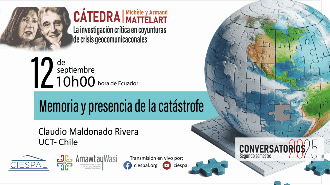 Este jueves 12 de septiembre se llevó a cabo el webinar “Memoria y presencia de la catástrofe”, organizado por la Cátedra Michèle y Armand Mattelart de CIESPAL, en coordinación con la carrera de Comunicación de la Universidad Amawtay Wasi. El…