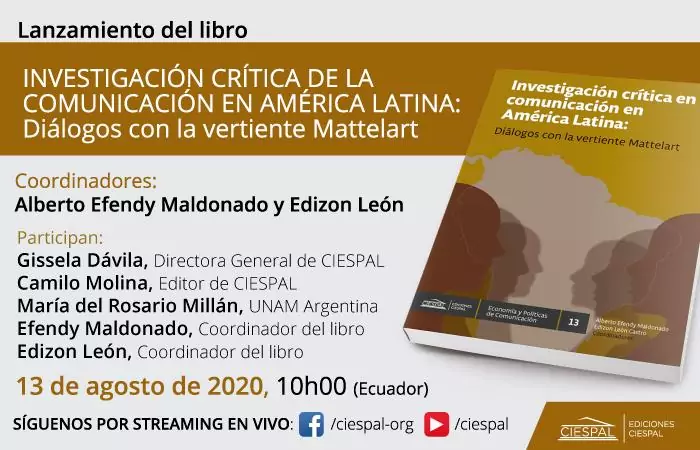 Transmisión en vivo Youtube Facebook El Centro Internacional de Estudios Superiores de Comunicación para América Latina, CIESPAL, a través de su Cátedra Armand Mattelart, busca la socialización del conocimiento científico en el área de ciencias de la comunicación. En este contexto,…