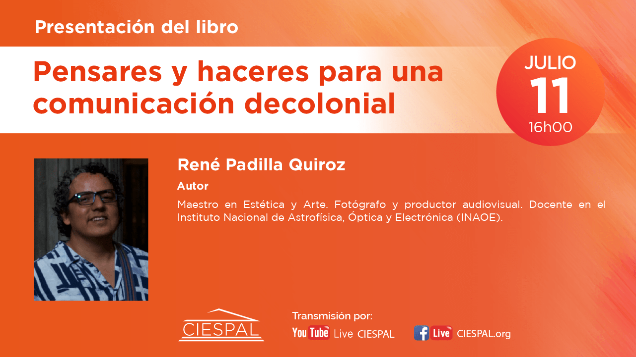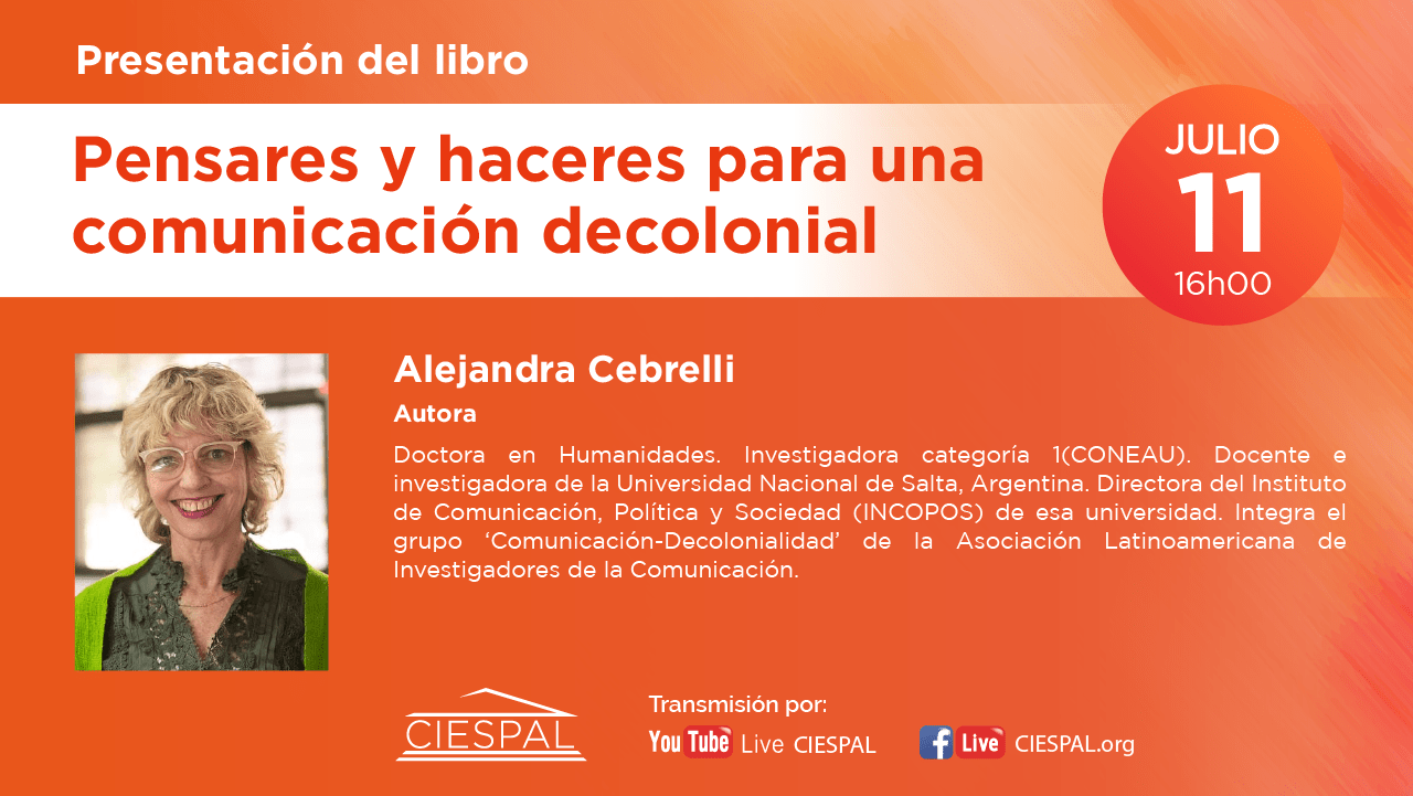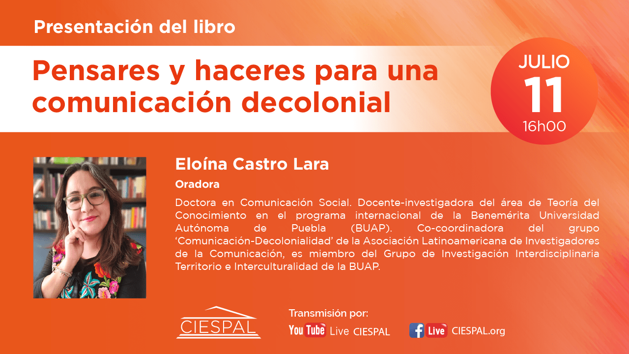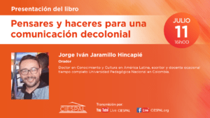 El Centro Internacional de Estudios Superiores de Comunicación para América Latina (CIESPAL) a través de su casa editorial realizarán la presentación del libro Pensares y haceres para una comunicación decolonial, el día jueves 11 de julio a las 16h00 (Ecuador) con la participación del Dr. Jorge Iván Jaramillo y Eloína Castro como oradores y la presencia de sus autores.