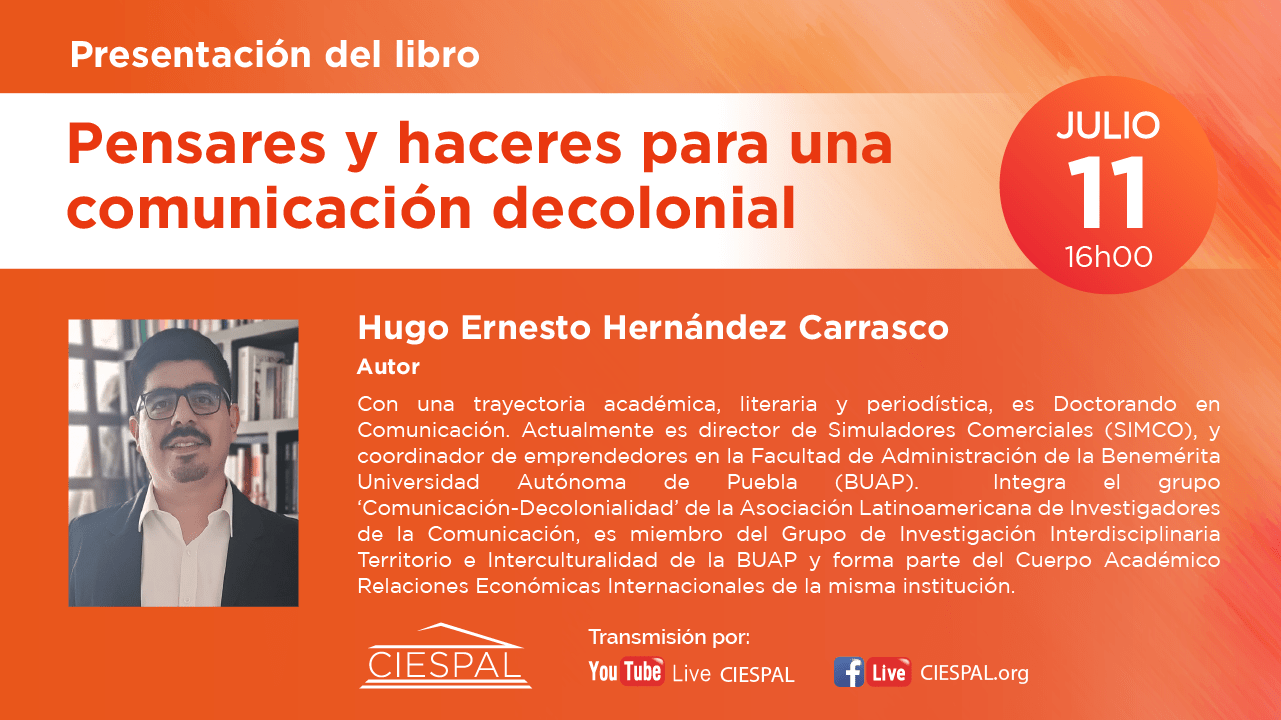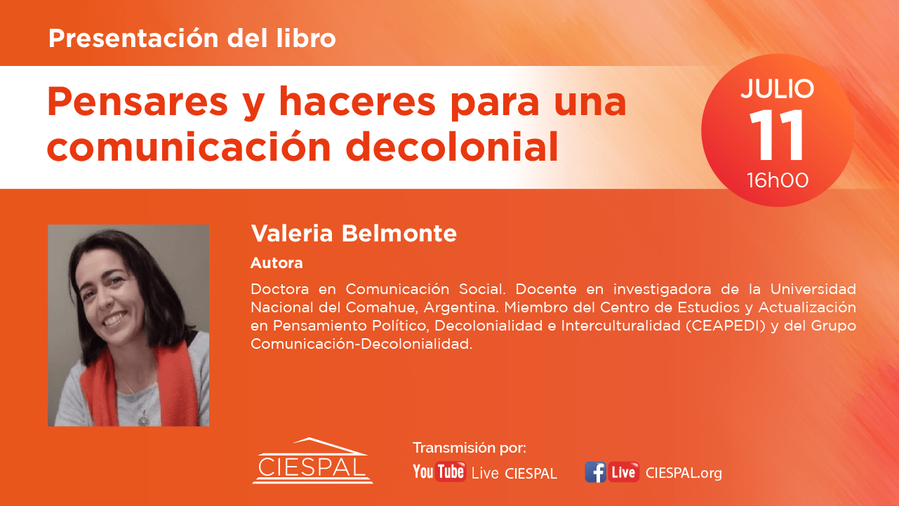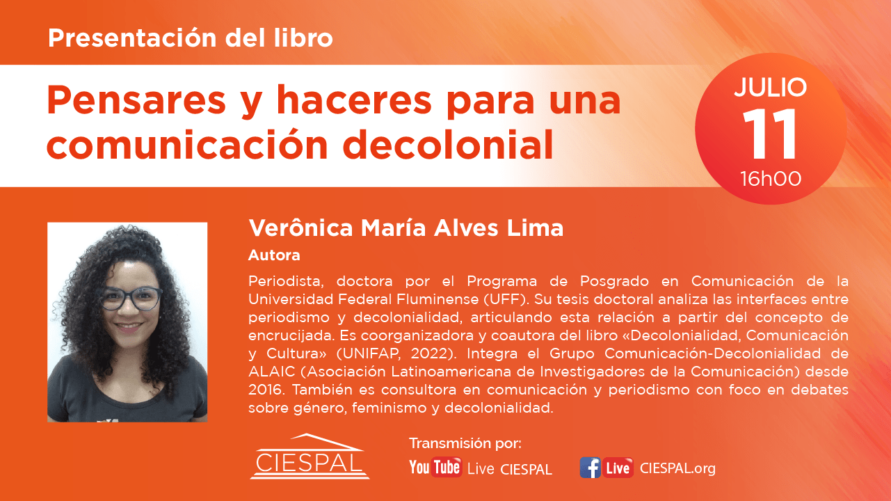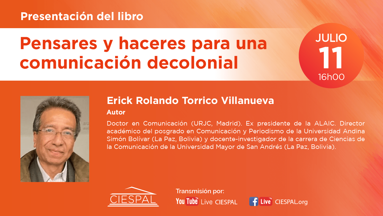 El Centro Internacional de Estudios Superiores de Comunicación para América Latina (CIESPAL) a través de su casa editorial realizarán la presentación del libro Pensares y haceres para una comunicación decolonial, el día jueves 11 de julio a las 16h00 (Ecuador) con la participación del Dr. Jorge Iván Jaramillo y Eloína Castro como oradores y la presencia de sus autores.